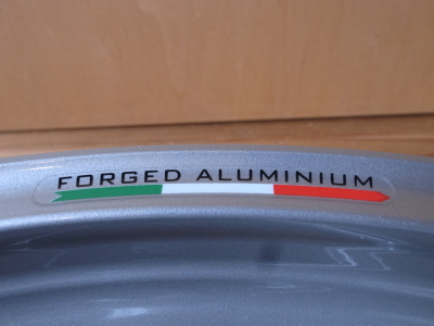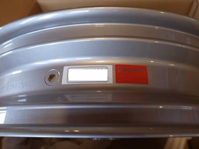 ホイールの裏側に仕様と距離無制限2年間保証シールが添付。 |