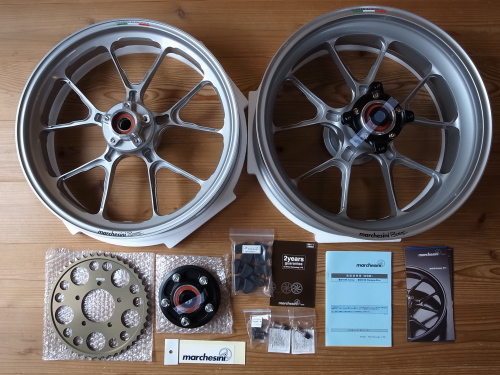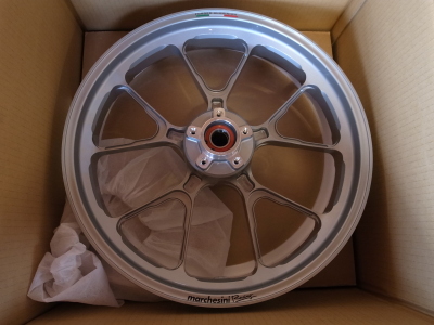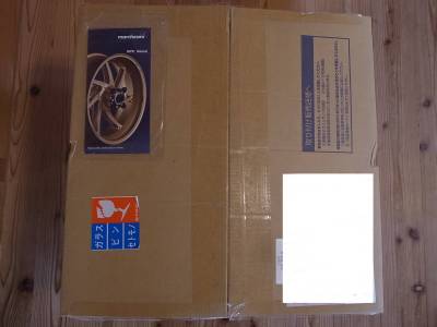 ダンボールと発泡スチロールの梱包は厳重。タイヤ1本毎に薄い傷防止用のカバー付。初お目見えのM10S、まず観たのはオプションのシルバー塗装の色目。思っていた通りのメタリックシルバー色でホッと一安心。