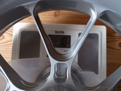 今回装着前にどうしても確認しておきたかったのが、M10S Kompe Evo と 純正ホイールの実測重量。装着後は測れないものなので、きちんとデータとして把握しておきたかった。結果はほぼ購入前の情報通りだった。