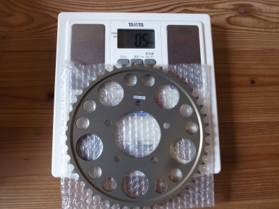 スプロケットは今回45丁 → 46丁に変更。1丁しか変更してないやないか? と言われそうだが、D5以降は騒音規制に適合させる為に純正リアスプロケットは45丁→44丁に変更されている。なので今回46丁にすると最終モデルからは2丁上げる事になる。