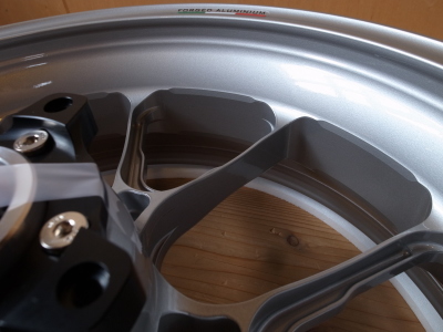 純正のホイールと比べて、スポークの肉厚が薄い。こんなんで大丈夫か?と純正のホイールを観た後は感じる。 | |