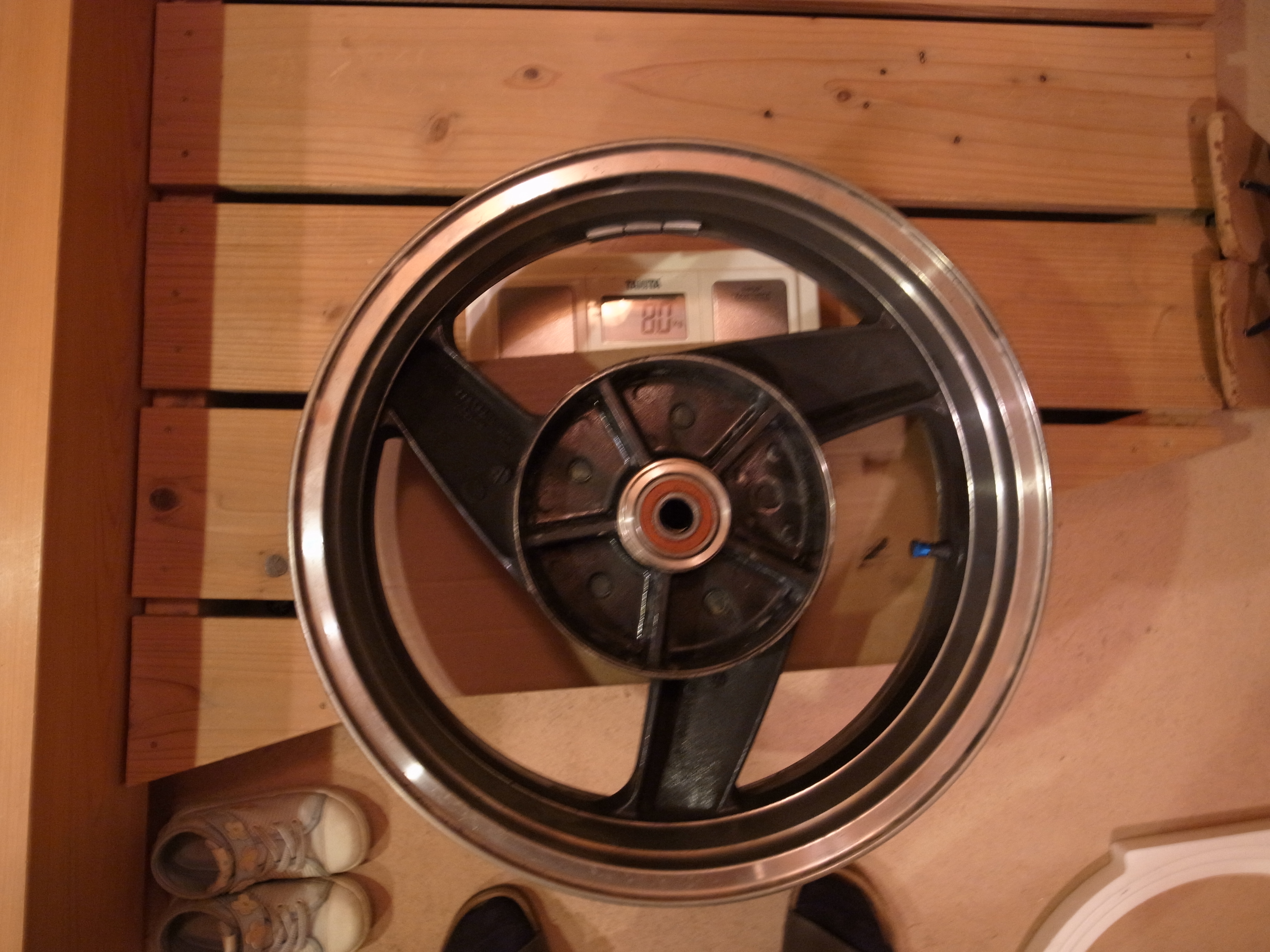 当たり前だがホイールだけで走っている訳では無い。バネ下重量という意味では、タイヤ、ブレーキディスクローター、ブレーキキャリパー、そしてスイングアームがあって、重量比減はもっと少なくなる。そこまで考えるとややこしいので、もう少し範囲を絞って回転体重量で比較してみる。
