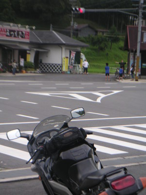 西名阪で一気に小倉ICまで走り、そこからがいよいよおいしい周回道路に入っていく。残念ながら霧雨で路面も濡れている状態。それでもペースをあげて、「道の駅御杖」まで走ったところで一休み。 休憩していた道の駅の目の前でラジオ体操が始まった。自分も小学生の頃眠い目をこすりながら近所のラジオ体操に参加した覚えがある。