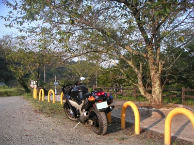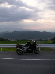 国道309号線に入ってから、いよいよ本格的にエンジンを回して走ってみる。低速の3000回転まではノーマル同様か若干トルク感が薄い感じがするが、3000回転以上になるとフィーリング・トルク感ともノーマル以上に良い感じだ。水越峠の手前は中低速ワインディング。ノーマルの時と比べて低速コーナーの倒し込みが少し楽になっている。10kgの軽量化は確かに実感できた。 水越峠を下って奈良側に入り、県道30号線に折れて南下する。ここから五条市までの道は車も少なく若干上り気味の中高速コーナーが続いて気持ちが良い。丁度日も昇ってきて朝焼けを横目で見ながらコーナーをクリアしていく。この頃になるとだいぶ新しいマフラーのフィーリングにも馴染んでいて結構大胆にエンジンを回してみたが、とても気持ちが良かった。 |