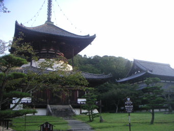 紀ノ川広域農道も順当にクリアしていき、あっという間に根来寺まで到着。実は会社の女の子が前週に根来寺まで遊びにきていて「良かったですよ〜!」と言っていたのを聞いていたので、朝一番お参りする事にする。境内は人もほとんどいなく静かで気持ちが良い。旧和歌山県議会の建物が情緒あった。