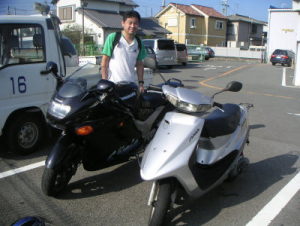 マフラー購入に当たってはRYUBE大阪の仲間であるうえぽん氏に色々アドバイスを貰っていた。ノジマファサーム購入の決め手のひとつに、同じノジママフラーを装着していたうえぽん氏のインプレがあった事が大きい。言わばマフラー選びの師匠であるうえぽん氏に是非ニューマフラーを見て欲しいと思い、実は朝早かったにも係らずうえぽん氏と待ち合わせをしていた。