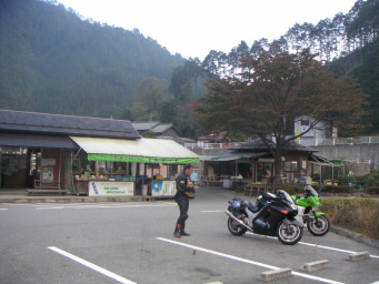 一息入れた後県道53号に折れて天川村を目指すがそこでもヤッシャーさんハイペースで飛ばす。後ろから見ていて、非常にメリハリのついたライディングだった。 とても私には真似できない・・・。が、ブレーキングポイントやコーナリングはとても勉強になった。 天川村到着後路の駅「吉野路黒滝」では定番の串こんにゃくを食べる。