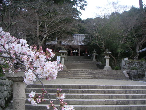 道路からこの門が見えて、思わず臨時停車。門の奥に階段があり、本殿に続いている。