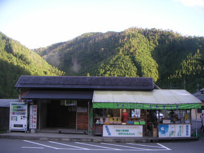 (道の駅「吉野路黒滝」の名物こんにゃくを売る売店。6時半過ぎには営業している)