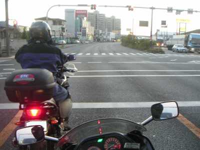 出発後中環を東に走る。丁度朝日が昇ってきて良い感じ(トップの写真)。6時までであれば県道31号を使って羽曳野までの道もガラ空きだ。グリーンロードに入ってからもずっとT@TDM900の後ろを走る。中〜高速のコーナーは随分慣れた感じ、反面低速コーナーが後ろから見ていてまだ若干ぎこちない。あとからTに聞いたら「低速トルクがないから難しいんや。お前試しに乗ってみろ」との事。