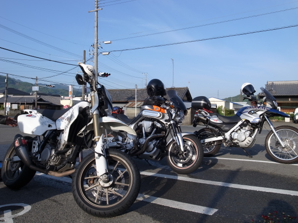 Rip氏呼びかけのツーリングに便乗させて貰い、久しぶりの高野山朝駆け。10時半帰着目標だが、そこそこ走り応えのあるコースになりそうだ。朝5時10分出発。泉北1号線を朝焼け眺めながら走る。この時間帯でもブルブル震えなくてすむようになったのはありがたい。集合場所のファミリーマート槇尾中学校南店には5時40分到着。既にRip氏のMT-01が停まっていた。ほどなく黒隼氏到着。私もそうだが黒隼氏も、最近はバイクほとんど乗っていなかった模様。GWはゴルフ三昧のようだ。Rip氏と同じ職場のBMW氏が到着して出発。