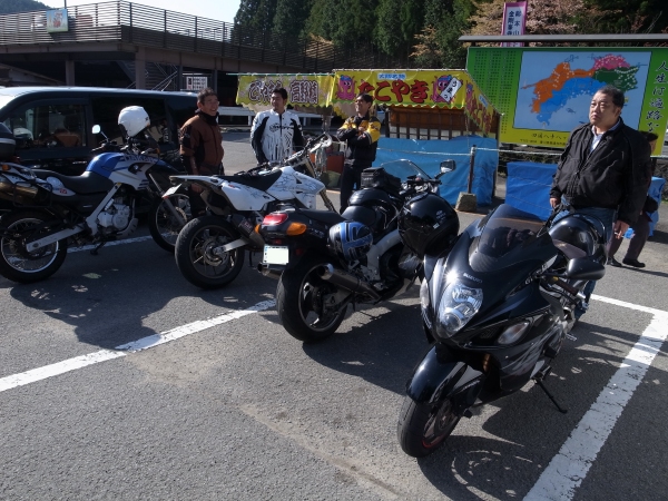 う〜ん、気持ち良い!!。バイクはやっぱり楽しいもんだ。 この天気につられてか、竜神スカイライン目指してバイクがどんどん上がっていく。彼らを追いかけて更に登っていきたいが、残念ながら私はここで折り返し。竜神スカイライン〜竜神温泉を目指して出発する4名を見送る。Rip氏によるとGW中和歌山県警が威信を掛けて大取締りをする、という情報があるらしい。お気をつけて。