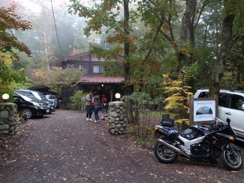 碓氷峠を越えると、下るものと思っていたらそのまま軽井沢市街に入った。軽井沢は予想していたよりも標高の高い場所にある。気温がかなり低く体が冷える。最初の目的地を調べておいて良かった。旧軽井沢を素通りし、追分まで走ったところで脇道にそれる。静かな別荘地の中に喫茶店「Cabot Cove」がある。
