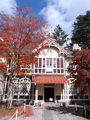 明治38年建立された軽井沢の名門ホテル。1970年に営業終了した後、重要文化財に指定された。大正ロマンフェチにはたまらない。景色が歪んで見えるガラス1枚から萌える(笑)。