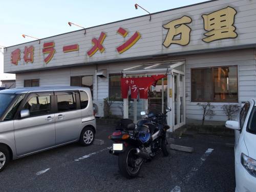 16時過ぎに目的のラーメン屋「万里」に到着。外観は地方都市のどこにでもありそうなイマイチパッとしないラーメン屋だが・・・。 | |