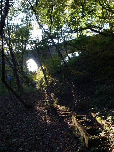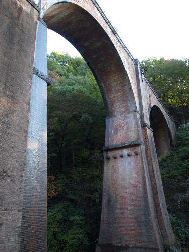 明治25年に完成したレンガ造りの橋。見上げるとかなりの高さ。曲線が美しい。 | |