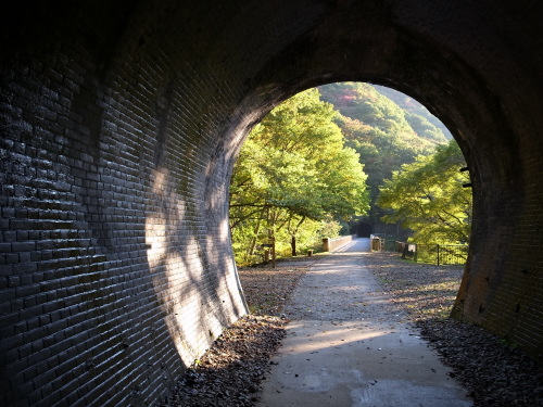 廃線後は「アプトの道」として遊歩道として整備されている。レンガ造りのトンネルは途中まで入ると真っ暗。「心霊スポット」としても有名らしいとの情報をネットで観ていたので、怖くなって途中で引き返した。ここは徒歩か自転車でトコトコ歩くのも楽しいそう。