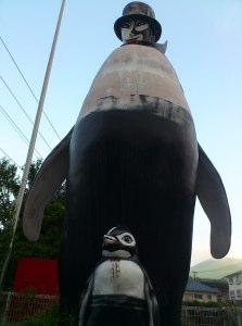 去年夏伊豆高原の「怪しい少年少女博物館」に鎮座していた、怪しいペンギン怪人を思い出す。悪趣味の極みの伊豆高原と比較するのは気の毒かもしれないが・・・。