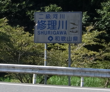 この道の駅の定番、「二級河川・修理川」の看板。 |