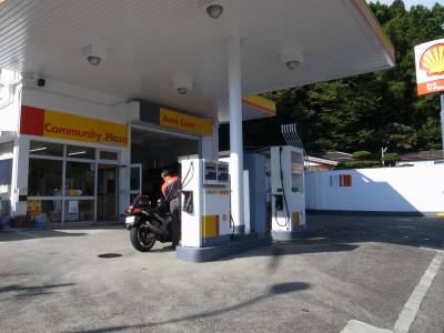 丁度大阪に向けての折り返し付近のガソリンスタンド。堺ではレギュラー120円〜125円/Lのところが、このGSは145円で20円も高い。 田舎での配送等の運営手間を考慮しても、ちょっと高すぎ。次回からは満タンにはせず必要な分だけ補充しよう。 |