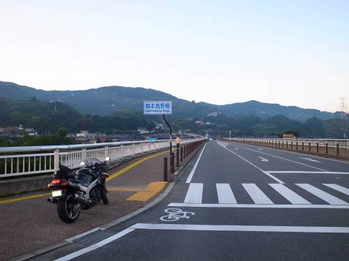 「橋本高野橋」。自宅出発から丁度1時間後の5時50分到着。この橋自体も平成18年完成でまだ新しい。この10年で高野山にアプローチするルートは少しづつだが着実に良くなってきている。橋を渡りきったところからが、今回部分開通した「フルーツライン」入口。