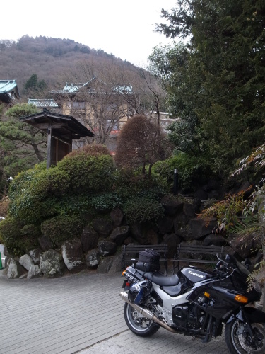 ヘルメットの中で「頼む、頼む。持ってくれ!」と呟き祈り続けながら、急坂の旧道をゆっくりゆっくり下っていく。芦ノ湖から登りが無く下りばかりだったのが助かった。15分程走り中腹まで下りた辺りで雪も止んだ。この時ばかりは心底ヒヤッとした。芦ノ湖は標高700m。3月になったとは言え、ちょっとなめていたところがあった。気を引き締めないと・・・。