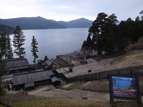 それ程期待して入った訳では無かったが、結構史実に則って忠実に再現していて見応えがあった。シルエット展示がなかなか良い。遠見番所から眺める芦ノ湖と関所が眺めが良い。看板には「関所破りをされないよう、目を凝らしてみましょう」。ここの施設のコメントはなかなかユーモアがある。ちなみにここの資料館の説明を読むまでは「わざわざこんな関所を通らなくても、山を抜けていけばええやん」と思っていたのだが、この辺りは山に入る事自体が禁止されていて地元村人による監視体制も取られていたらしい。関所破りは磔による処刑。江戸時代記録に残る関所破りは10件も無かったそうだ。なる程・・・。