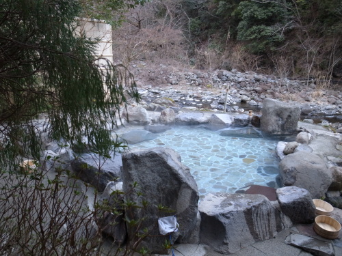 ここの日帰り温泉料金は1,500円。大阪で一般的な郊外温泉施設だと700〜800円だから倍近い。でも私にはこの値段はとてもリーズナブルだと思う。露天風呂で過ごした1時間半のうち、他の客はたった4組8名(3名・1名・3名・1名)。半分以上の時間を貸切状態で使う事ができた。ラッキーだった面もあると思うが、実は明確な理由がある。ここは温泉も景色もロビーも大ヒット。箱根方面のコース定番に取っておきたいのでホテル名は伏せておく。