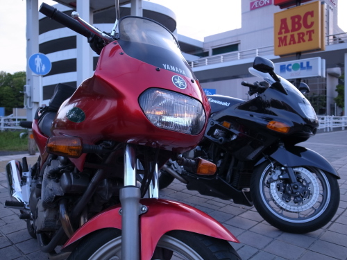 ディバージョン400。なんでも愛媛時代に私がケロにこのバイクを勧めたらしい(私は全然覚えていない)。当時もカタログ受けしない非力なエンジン、ちょっと変なアッパーカウル、シングルブレーキディスクとお世辞にも売れる要素の無さそうなバイクではあった。けれど、愛読していたモータサイクリスト誌では、そのハンドリングが絶賛されていたし、空冷エンジンの存在感もあって世間一般で酷評される程スタイルは悪くない、というのが個人的な印象だった。