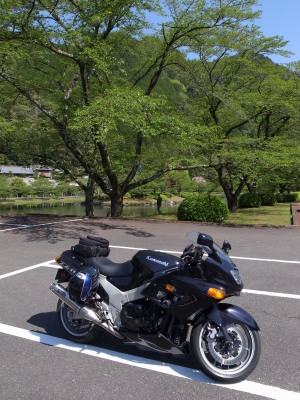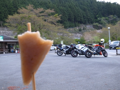 昼過ぎには帰宅したい私はここで皆さんとお別れ。お見送りした後1台になったZX-11はなんだか寂しそう(苦笑)。元きた道を戻り、冬季通行止め解除仕立ての国道309号を敢えて進み(結構きつい道だった)、道の駅「吉野路黒滝」で久しぶりのこんにゃくを食べて、帰宅。