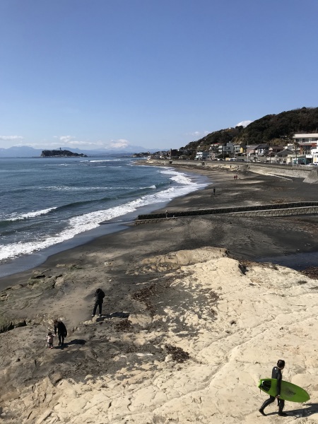 サーフィンをしているところを暫しみとれる。遠く富士山。来て良かった!その後叔母の経営している雑貨屋に寄った後15時前に帰路につき、16時半寒くなる前に帰着。
