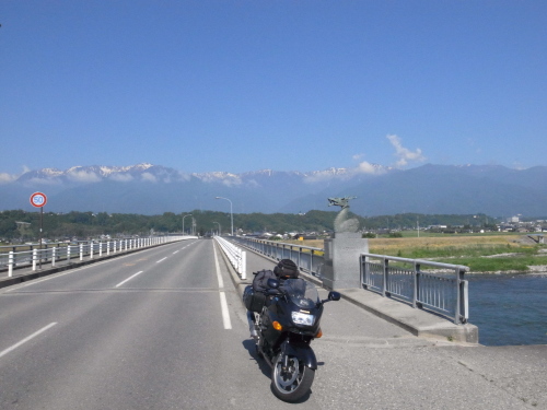 駐車場に戻って出発準備をしていると、か細い声で後ろから「九州から来たんですか?」と話しかけられた。振り向くと30代位の華奢な女の子ライダーがニッコリ笑って立っている。関西から下道だけで走ってきたとの事。聞くと北は北海道、南は鹿児島まで走り回っているそうだ。関東に来てから福岡ナンバーで話し掛けられる機会が増えた。大阪と違って九州〜関東(信州)の距離感はかなりあるのだろう。今日は得した気分(笑)。