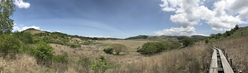 この景色をFaceTimeで娘に見せたら、アイスクリーム好きの娘はスマホ画面を舐めようとしていた(笑)。雲が水平に見えるのだから標高が高い証拠。その後Uターンして、八島ヶ原湿原に立ち寄る。