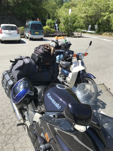 暫しご一緒する事に。そこでカブのポテンシャルをまざまざと知る事になる。急な登りはさすがにしんどそうだが、それ以外の下道シチュエーションではZX-11と一緒に走っても遜色無い。まあ、ヤッシャーさんが乗っている、というのも大いにあるのかもしれないが(実際下りでは前を走るカブは速かった)。