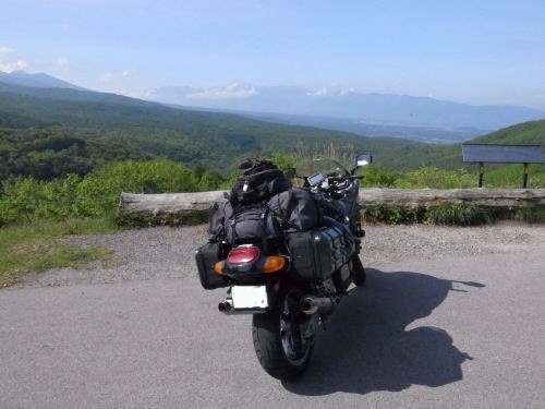 おそるべし、カブ。皆さんがカブにはまる理由が判った気がした。いろは坂の展望台から諏訪方面を眺めてここでお別れ。私は国道299号線を登り麦草峠越え(トップの写真)。下った清水町から開通したばかりの中部横断自動車道で佐久小諸JCT経由、上信越自動車道で関東に戻る。