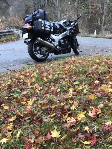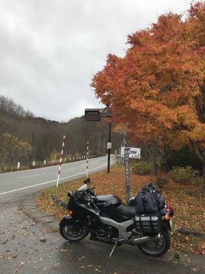 新潟で予定されていたラグビー試合にかこつけて、以前から東北〜新潟キャンプツーリングを計画。幸い週末の天気も良さそうで予定通り決行。朝4時半浦安出発し、東北道〜西那須塩原IC〜国400号〜国352号を経由。途中の峠で抜群に綺麗な紅葉が残っていた。