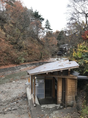 最初の目的地は木賊温泉。1年前の只見ツーリングでrenさんとまれさんに話をお聞きし、一度行ってみたいと思っていた。水害から復旧して11月4日から使えるようになったばかりの岩風呂に入る。川の横、飾り気の無い温泉だがお湯は優しくて来た甲斐があった。