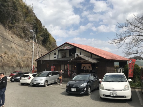 県道14号線は普通に幹線道路だし、運送会社の車両基地に囲まれて、店も立派。僻地感を期待していたが拍子抜け。ネットでは「11時から」との告知があったので10時半に到着してみたら、店のおばさんが周りを掃除中。11時半開店と聞き拍子抜けしたが、1番最初に名前を書かせてくれた。近くをブラブラして、20分程前に戻る。