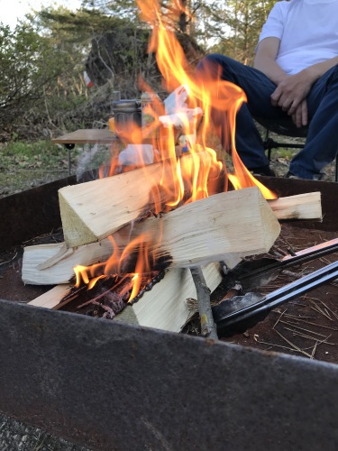 今回成功の要因は、着火材になる松ぼっくり、小枝、太い枝を選別して容易していた事。そして何よりもサイトの廻りに乾燥した芦のような枯れ草が山のようにあった事。取り敢えずこの枯れ草を入れておけば盛大に火が燃えた。 いつも通りバーナーは持ってきていたので、ファイザースターターで火を起こしたから何なのだ・・・我ながらそうは思うのだが、それでも気分は非常に良い。