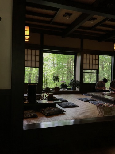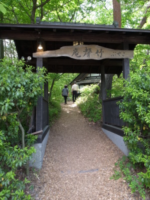 景色がとにかく雄大。景色ひとつひとつが印象的。道も良いし乗鞍界隈なかなかのポテンシャルだ。 361号に入ったところでヤッシャー氏をお誘いして最後のチャンス、事前リサーチしていた 「こやぶ竹聲庵」 で昼食。立派な門構え。