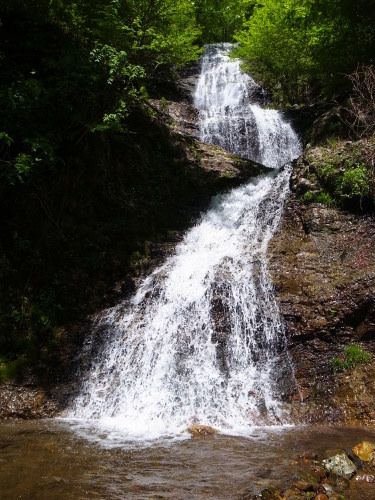 19号〜361号から旧道に入ったところで、唐沢の滝が目に留まる。落差100mの滝壺でボーっとする。