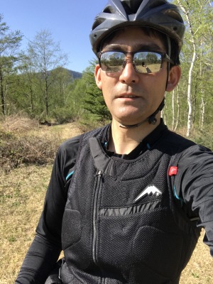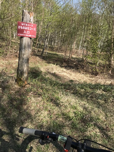 そこからMTB用のコースに入る。細い山道を利用した専用コース。緩やかな下りなのでスピードをコントロールしながら下っていく。コーナーではドリフトもどきもして、時々木の根でジャンプ!ちょっとスキーに似ているところもあるかな。MTBはコースがほぼ決められている、という部分はあるけれど。