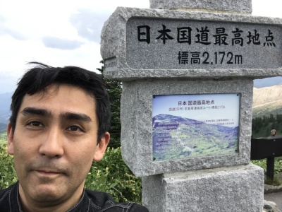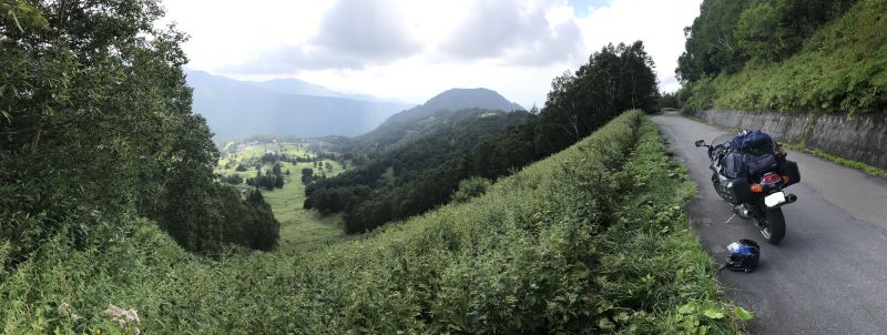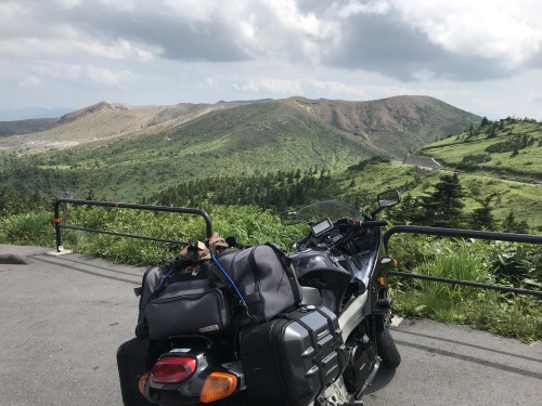 湯釜付近の火山規制により国道219号は二輪通行禁止。その為万座ハイウェイに迂回して渋峠を目指す。尾根伝いの滋賀草津道路は景色爽快、気持ち良く抜ける事ができた。本当は毛無峠にも寄ってみたかったが時間の関係でパス。いつかRYUBEの仲間と再訪した時の為に取っておこう(悔し紛れ)。