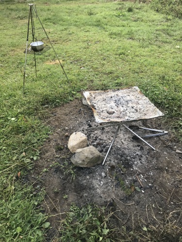 朝起きてみると、あれだけ太い薪が完全燃焼して灰になっていた。この焚き火台は相当気に入った。山田牧場キャンプ場、生木の薪は無料で貰えるし(通常の薪は購入)、トイレも綺麗で値段も安い。また来年暑い時期に来よう。ちなみに、ren師匠も遭遇した狸には会う事が無かった。100均で撃退用の水鉄砲まで購入していたのに・・・。ところが朝起きてみたら、まとめていたゴミが散乱していた。ナマモノは無かったはずだが、つまみ替わりで買っていたりんごパイの包装ににおいが残っていたのか。カラスの散らかし方とは違ったので、例の狸だったのかもしれない。