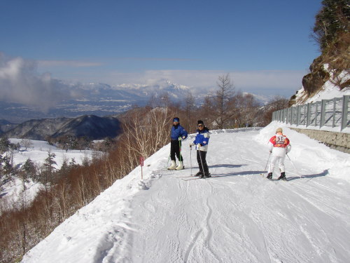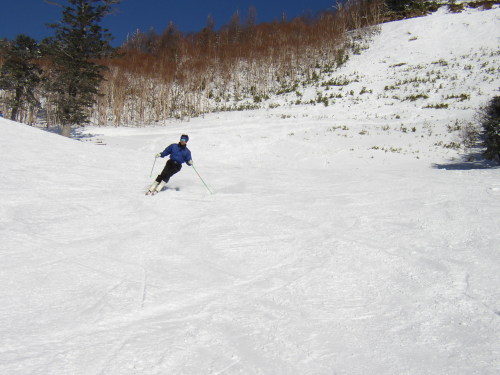 華麗な(?)私の滑り。このスキー場はコースは少ないけれど人も少なくて、のんびり滑るには本当に良いところ。壁の傾斜は38度で勇気がいるが標高が高くて雪質が良いので、技量が未熟でも滑れてしまう。久しぶりにスキーをしたいなあ。