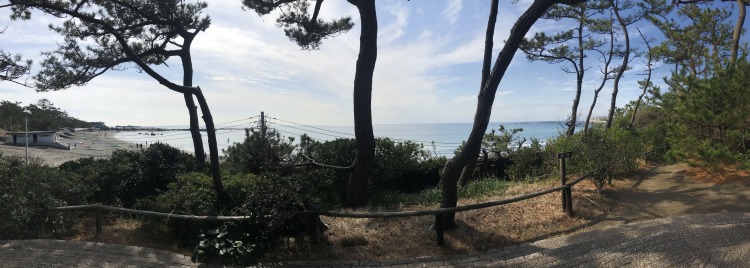 店を出た後は、葉山の神奈川県立近代美術館・葉山館。ここの駐車場もバイク無料なのがありがたい。夏は大渋滞な湘南エリアだが、バイクに優しいのは土地柄か。当初気になっていた美術館付属のカフェは、なぎさ橋珈琲店で期待以上にくつろげたので今回はパス。隣りの葉山しおさい公園をブラブラする。ここは以前は隣接する葉山御用邸の一角だった。見所は少ないけれど、敷地内から葉山の海を眺める事が出来る。左手には今も残る御用邸。皇室の方々が御用邸敷地内から臨む景色はこんな感じなんだ。