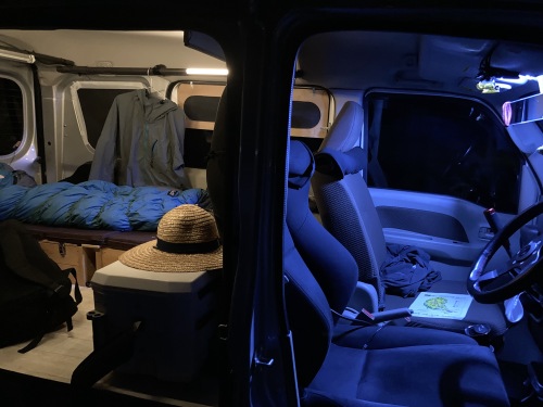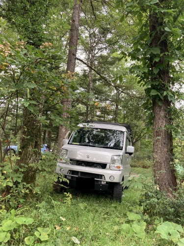ナイフにショックを受けている私に、「そのうちそのナイフを自分でカスタムしたらええねん」と励まして下さった方の愛車、朝の様子。軽エブリーとは思えない、特殊車両のような様相。