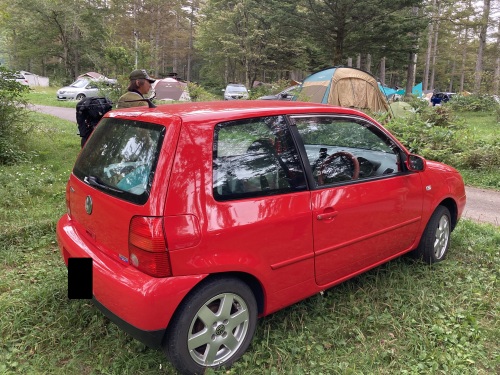 renさんの会社後輩OKさんの愛車ポロ。今どき見かけなくなった2ドアコンパクト。後部座席に荷物を詰め込んで、身軽な車体が楽しそう。JUNさんのエブリーとはまた違った旅車になりそうな感じ。