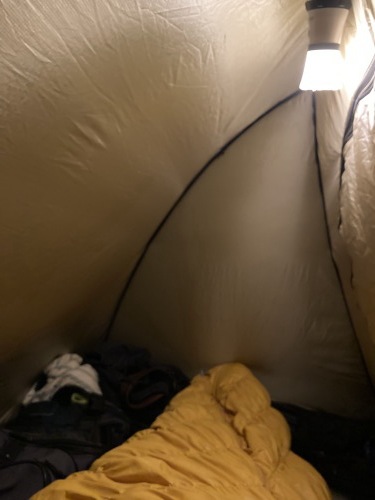 いつもの如く、焚火を眺めていたら最後の一人になっていた。火を消してドマドームライト2に潜り込む。朝4時から動き出したのに不思議と疲れはない。
