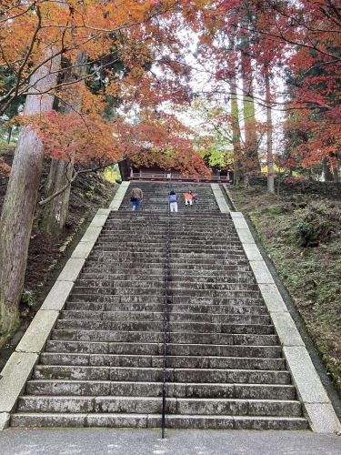文殊楼に登る階段。台湾もしくは中国からの観光客とおぼしき家族連れが階段を頑張って登っていた。ようやく観光客が戻ってきたようだ。団体客で多すぎるのも興ざめだけれど、外国人観光客が全くいない観光地も寂しい。程々に日本人も外国人も普通にいるのが一番良いと思う。